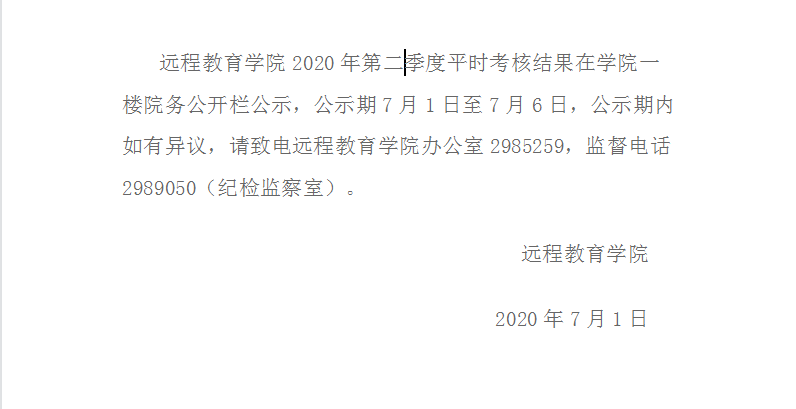 远程教育学院2020年第二季度平时考核结果公示
