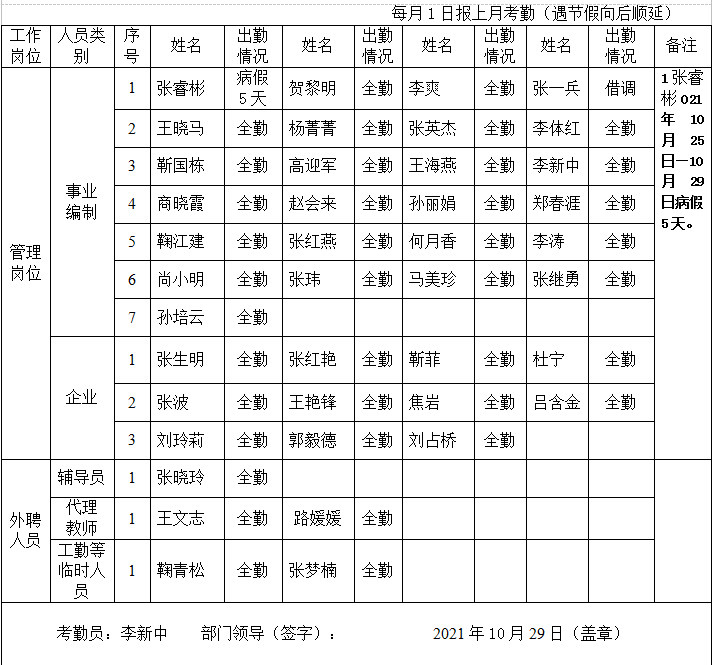 远程教育学院2021年10月考勤表