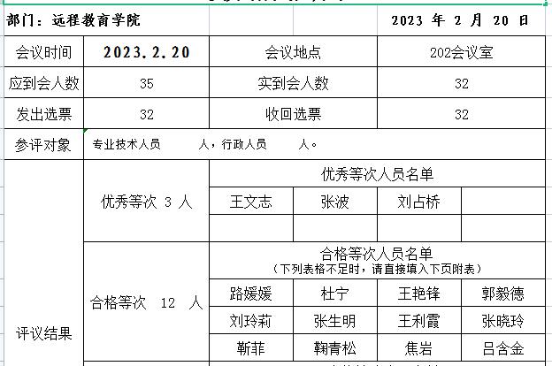 远程教育学院2022年度非事业编制教职工考核结果报告单